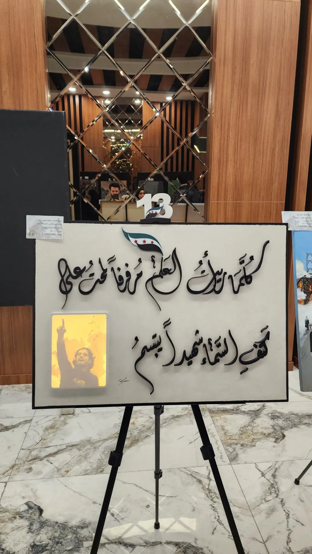 اللوحة من تخطيطي وتصميمي ومشغولة بتقنية الطباعة ثلاثية الأبعاد مع إضافة صورة الشهيد عبد الباسط الساروت وإضافة الإضاء...