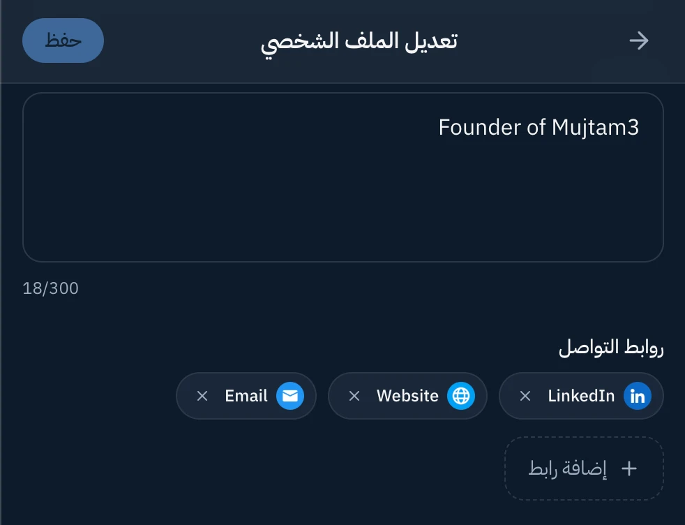بإمكانكم إضافة روابط مواقع التواصل لملفكم الشخصي 😎
