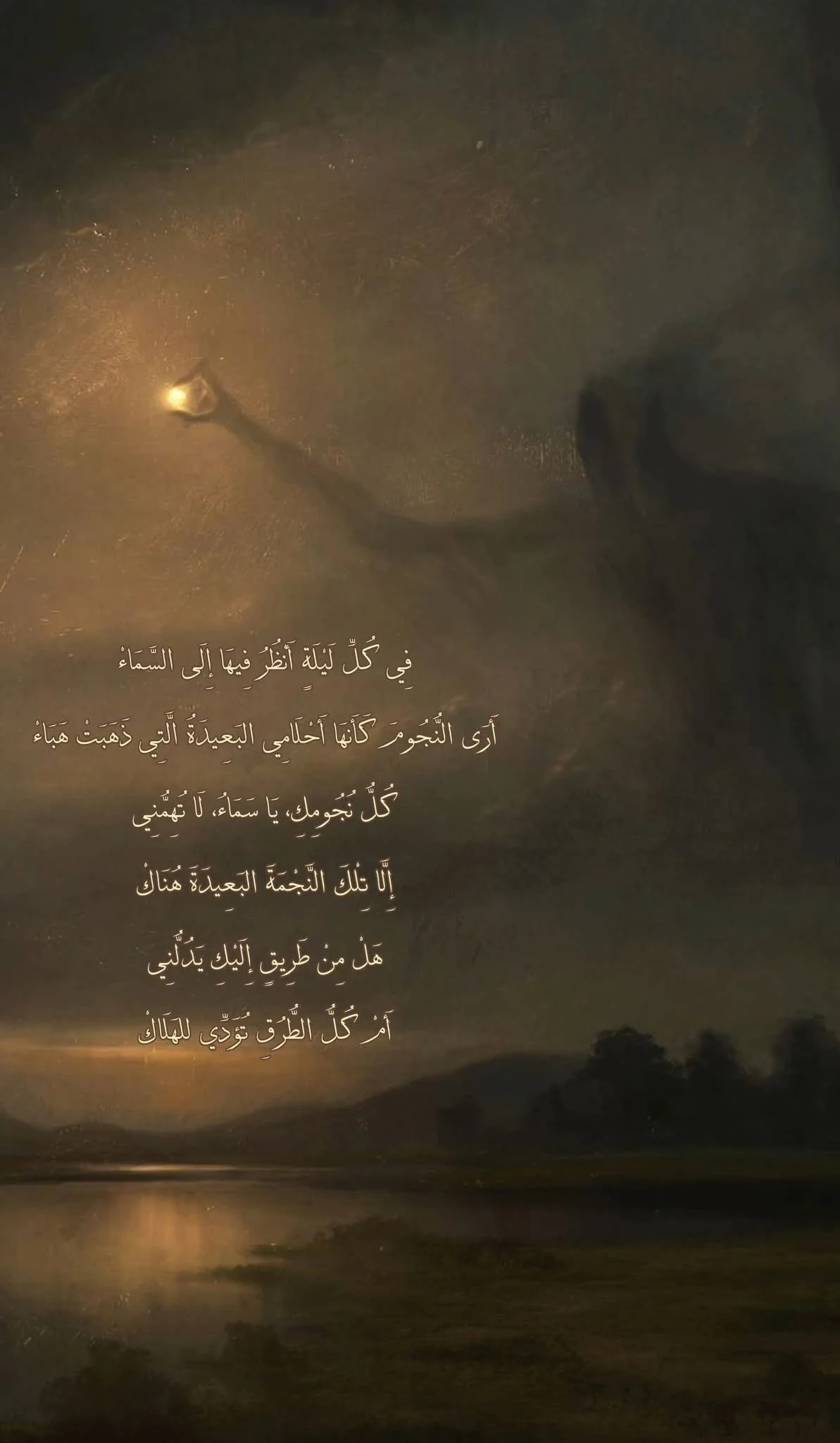 أَرَى النُّجُومَ كَأَنَّهَا أَحْلَامِي البَعِيدَةُ الَّتِي ذَهَبَتْ هَبَاءْ
