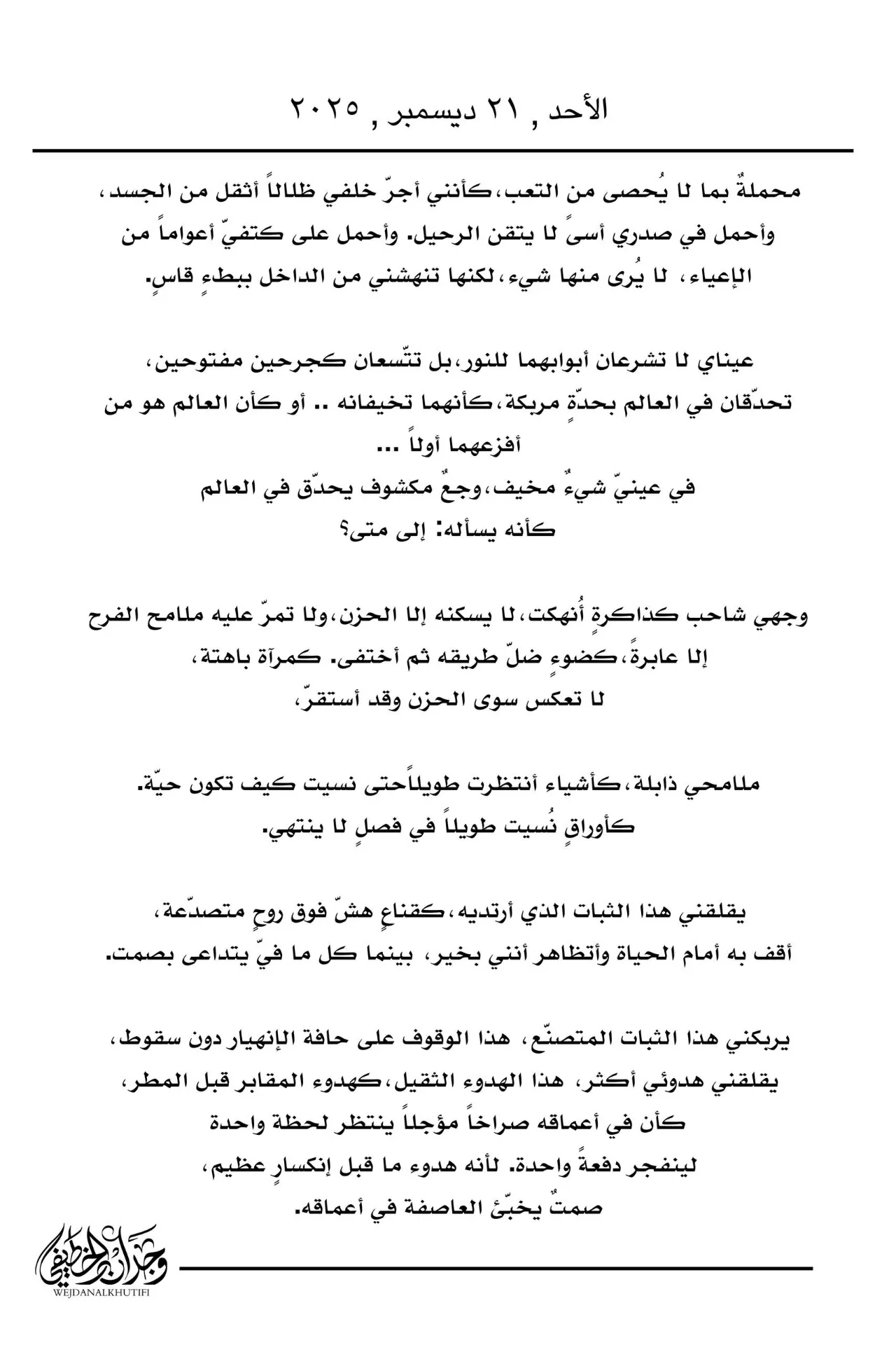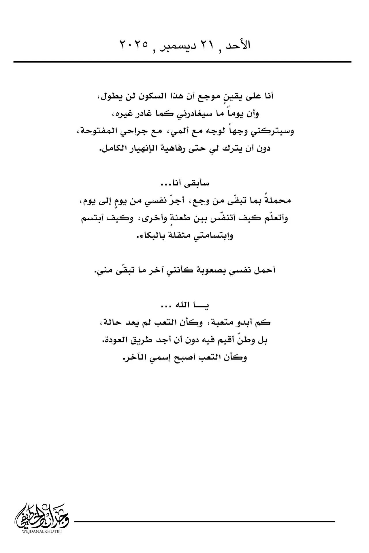 وأحمل في صدري أسىً لا يتقن الرحيل.