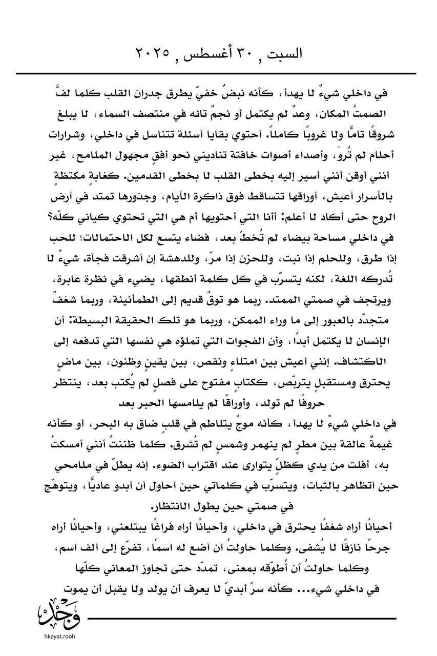 في داخلي شيء… كأنه سرّ أبديّ لا يعرف أن يولد ولا يقبل أن يموت .. بقلم : #وجدان_الخطيفي #حكاية_وجد #شعر #مجتمع #قصيد