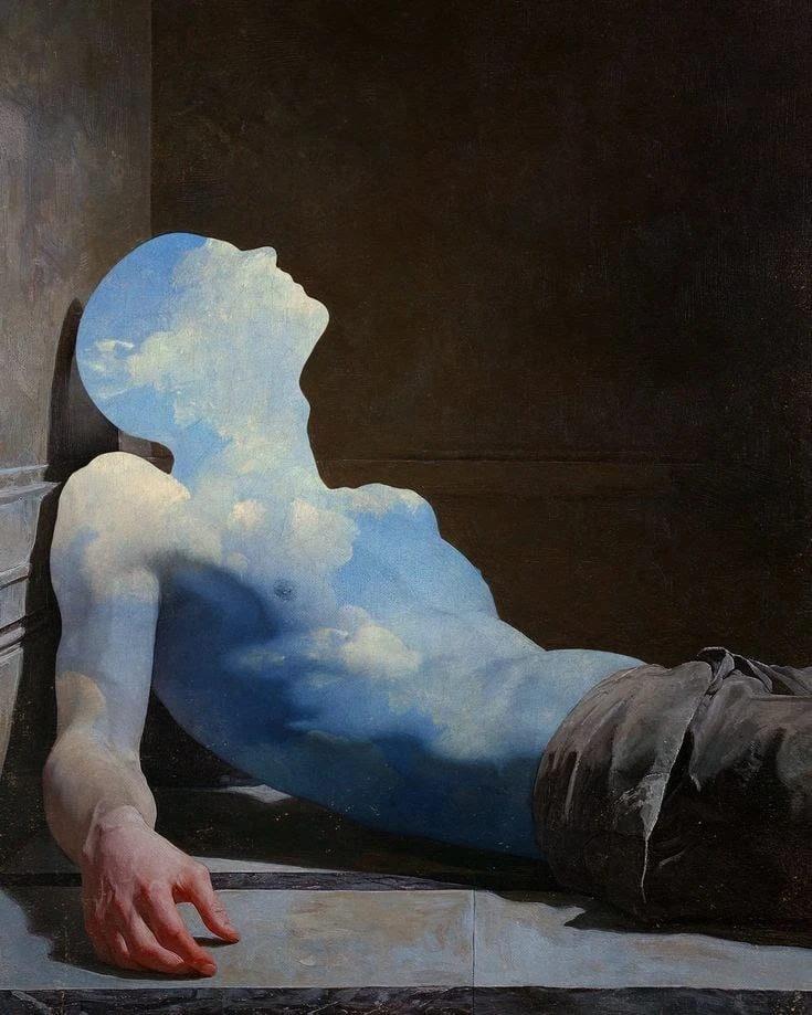 كان الجسد مستلقياً على حدود الظل ، كأنه كُسر بين عالمين . عالمٌ يزنُه التراب ، وآخر تبتلعه السماء