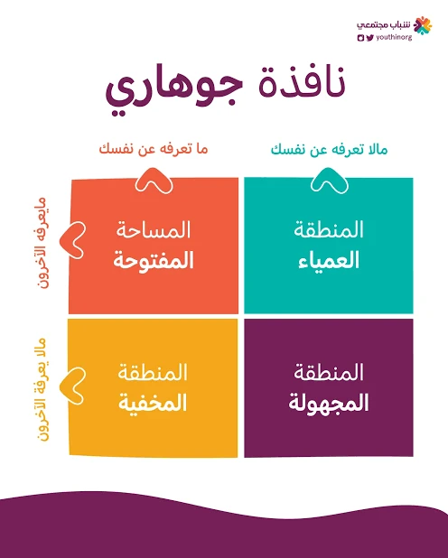 الخانة 1: المنطقة المفتوحة : ماتعرفه عن نفسك + مايعرفه الآخرون عنك (كاسمك وعملك )