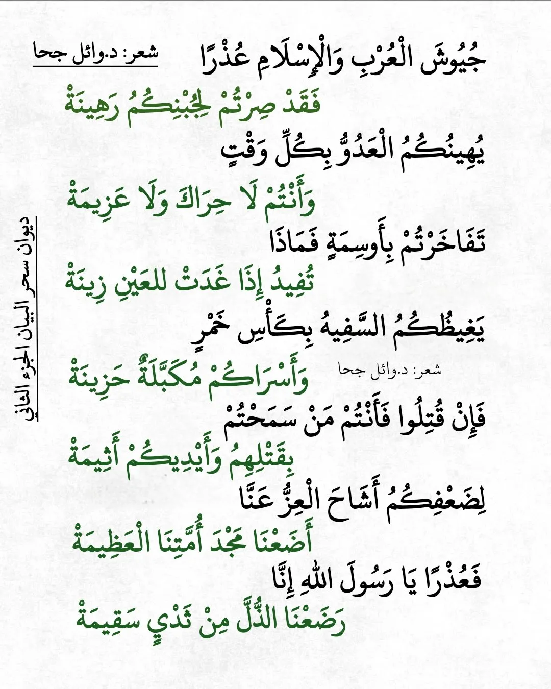 جُيُوشَ الْعُرْبِ وَالْإِسْلَامِ عُذْرًا