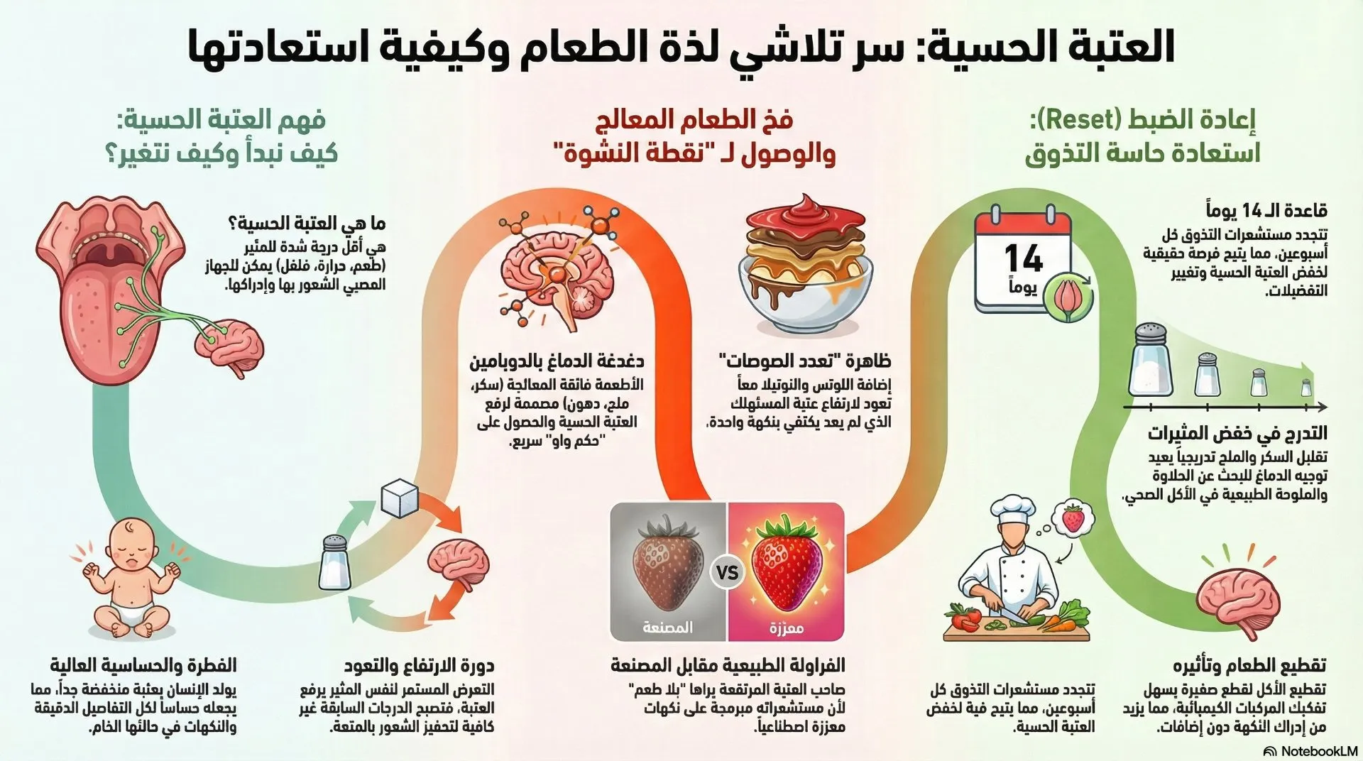 تحدث عن مفهوم العتبة الحسية Sensory Threshold أو عتبة اكتشاف التذوق Taste detection threshold.