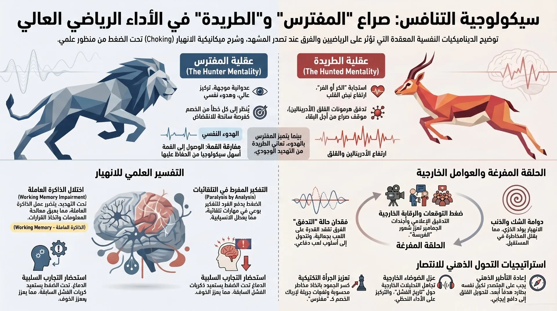 غدا المباراة الموعودة التي قد تحدد بطل موسم الدوري الإنجليزي بين السيتي وارسنال: حول الفرق النفسي بين عقلية "الصياد" و"الفريسة" في سياق التنافس الرياضي مع التركيز بشكل خاص على صراع نادي أرسنال ضد مانشستر سيتي في الدوري الإنجليزي.