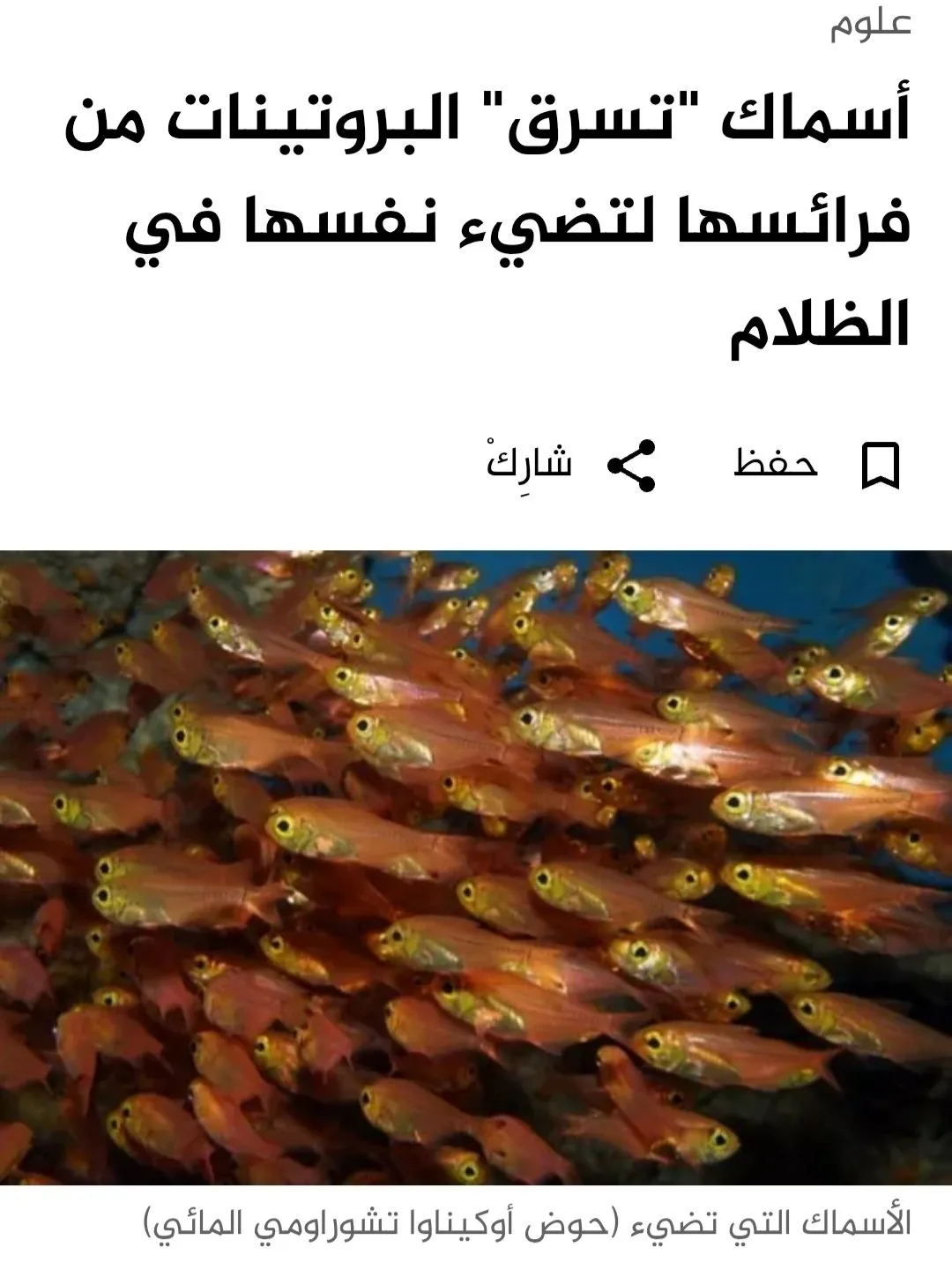 ظاهرة علمية مثيرة تحدث في البحار والمحيطات وأيضا فى أحواض أسماك الزينة. رابط المقال في التعليقات 👇