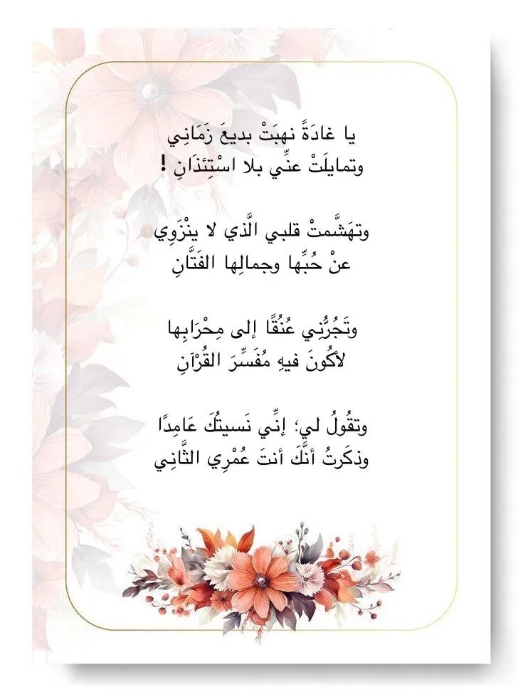 يا غادَةً نهبَتْ بديعَ زَمَانِي