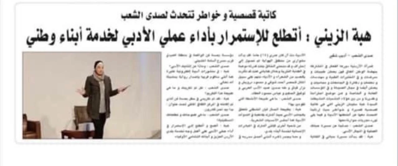 هبة الزيني: أديبة شاعرة وقاصة مسؤولة ومدربة سابقة في مؤسسة ثقافية لدعم المواهب المسرحية .. عضو هيئة إدارية في تجمع الأدب والإبداع مسؤولة ومنسقة لدى عدة دور نشر وتوزيع