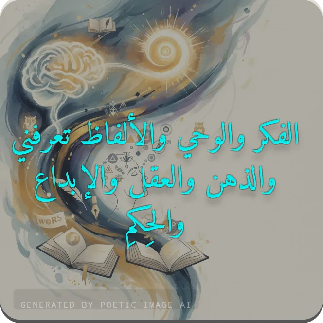 الْفِكْرُ وَالْوَحْيُ وَالْأَلْفَاظُ تُعَرِّفُنِي… وَالذِّهْنُ وَالْعَقْلُ وَالْإِبْدَاعُ وَالْحِكَمُ